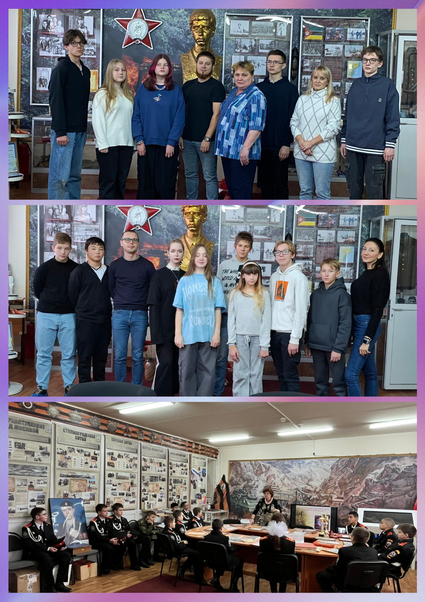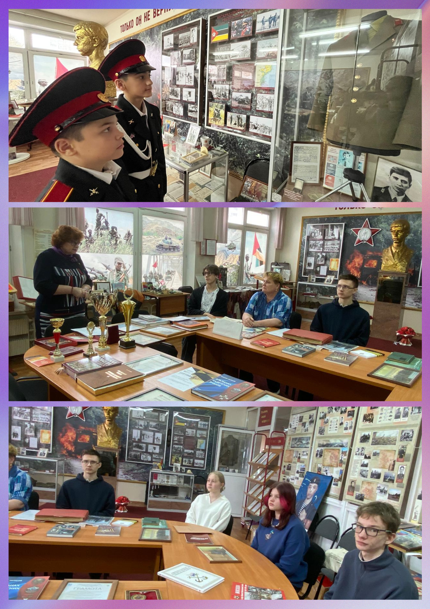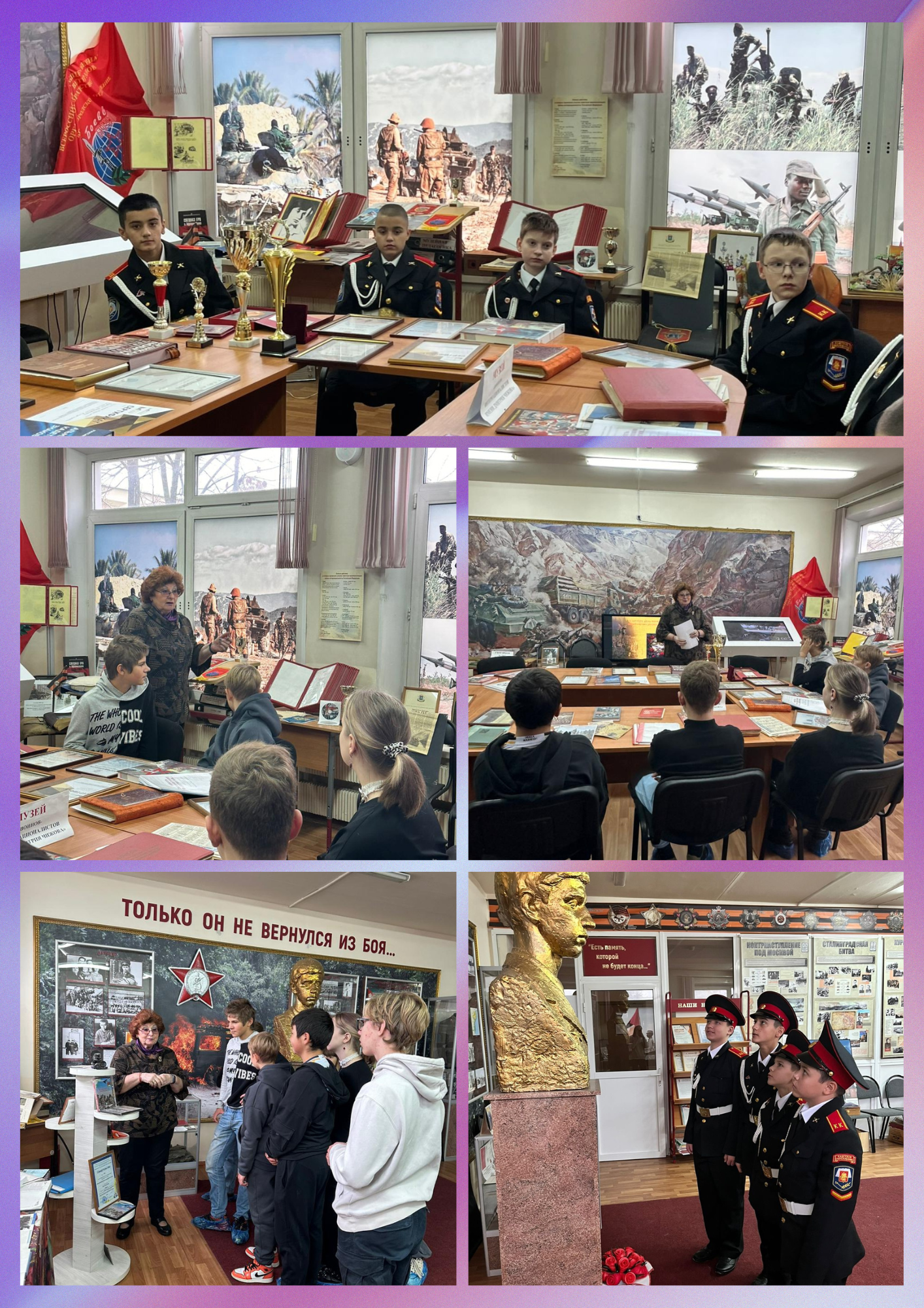 Осенние каникулы в нашем школьном музее "Воинов-интернационалистов имени Дмитрия Чижова", расположенном в корпусе №5, выдались насыщенными и познавательными. Учащиеся с интересом посетили музей и прослушали лекции на актуальные темы: "Подвиг - как мы его понимаем" и "30 октября - день памяти жертв политических репрессий".
