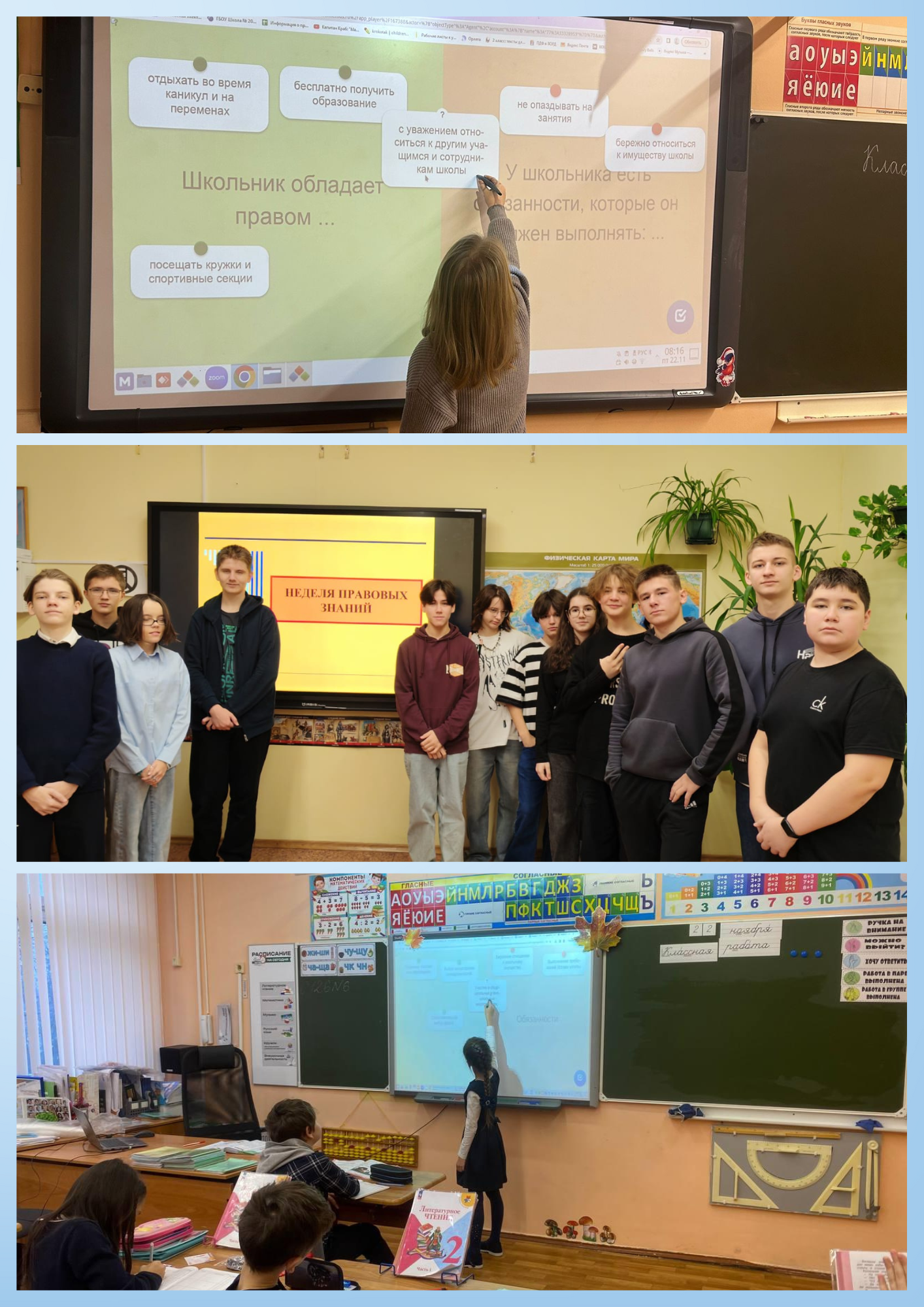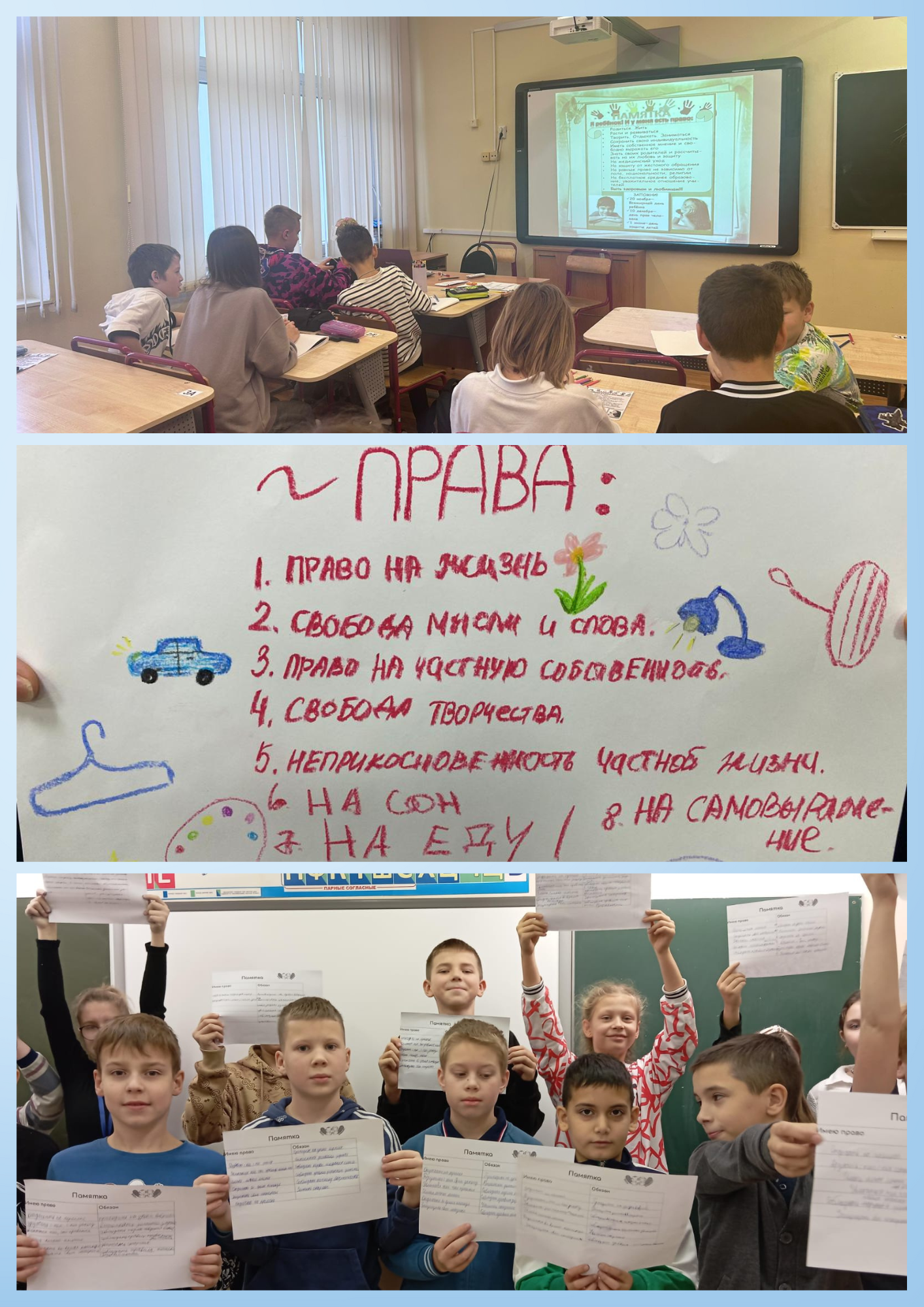 В период с 18.11.2024 по 22.11.2024 в рамках Недели правовых знаний «Имею право и обязан» в нашей школе был проведен ряд мероприятий, посвященных Всероссийскому дню правовой помощи детям: классные часы, тематический игры, тренинги, конкурсы, просмотры и обсуждения видео о правах человека, а также флешмобы и круглые столы. Например, наши ученики начальной школы посмотрели видеоматериалы «Смешарики. Азбука прав ребенка» и обсудили на классных часах права и обязанности современных детей.