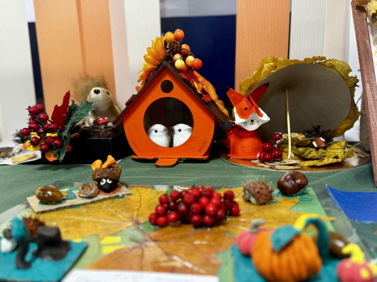 • Фантазия не знает границ! Мы увидели целые композиции из шишек и желудей, картины, нарисованные осенними листьями, и даже скульптуры из моркови и тыквы, которые могли бы украсить любой музей!
