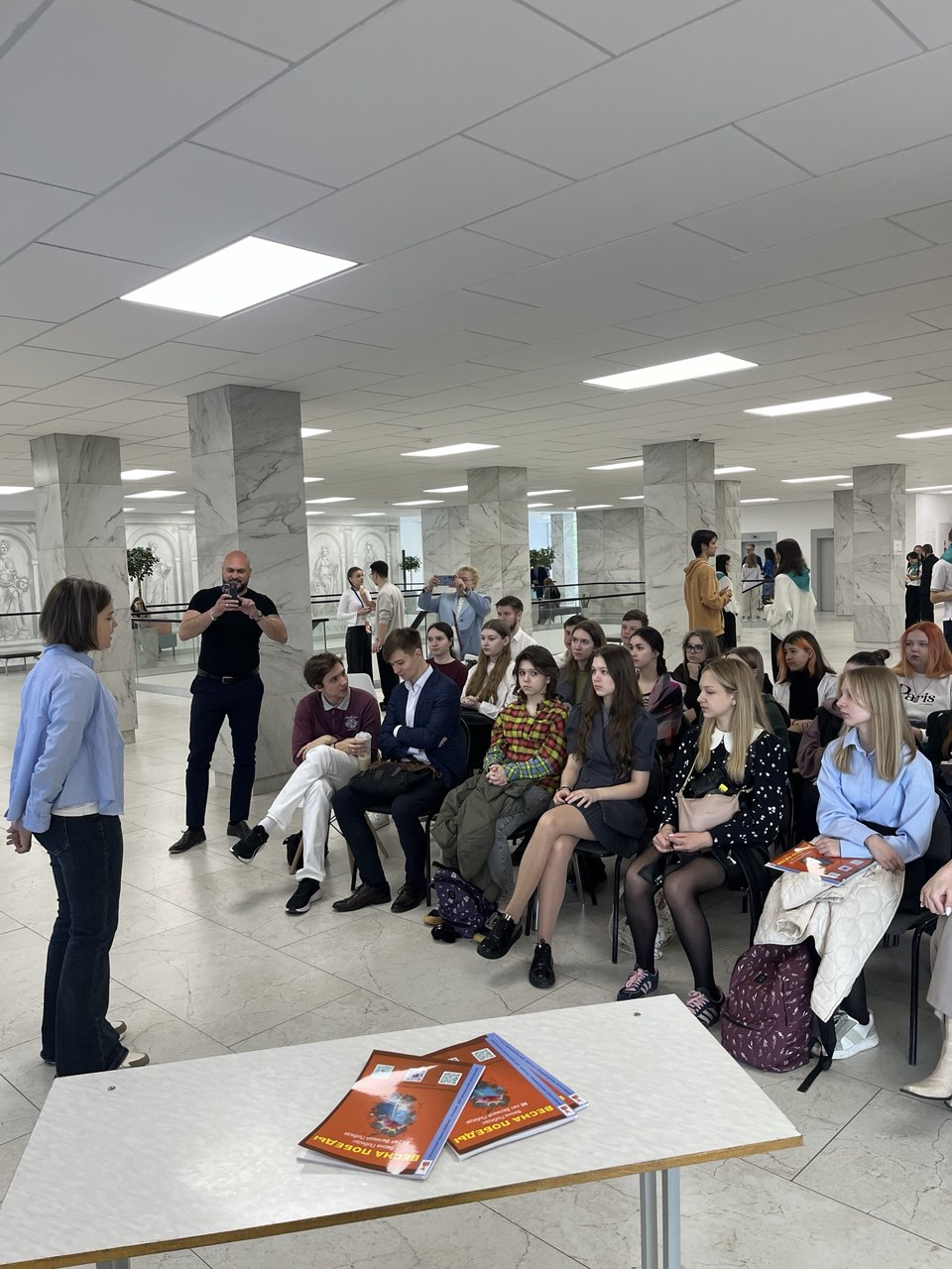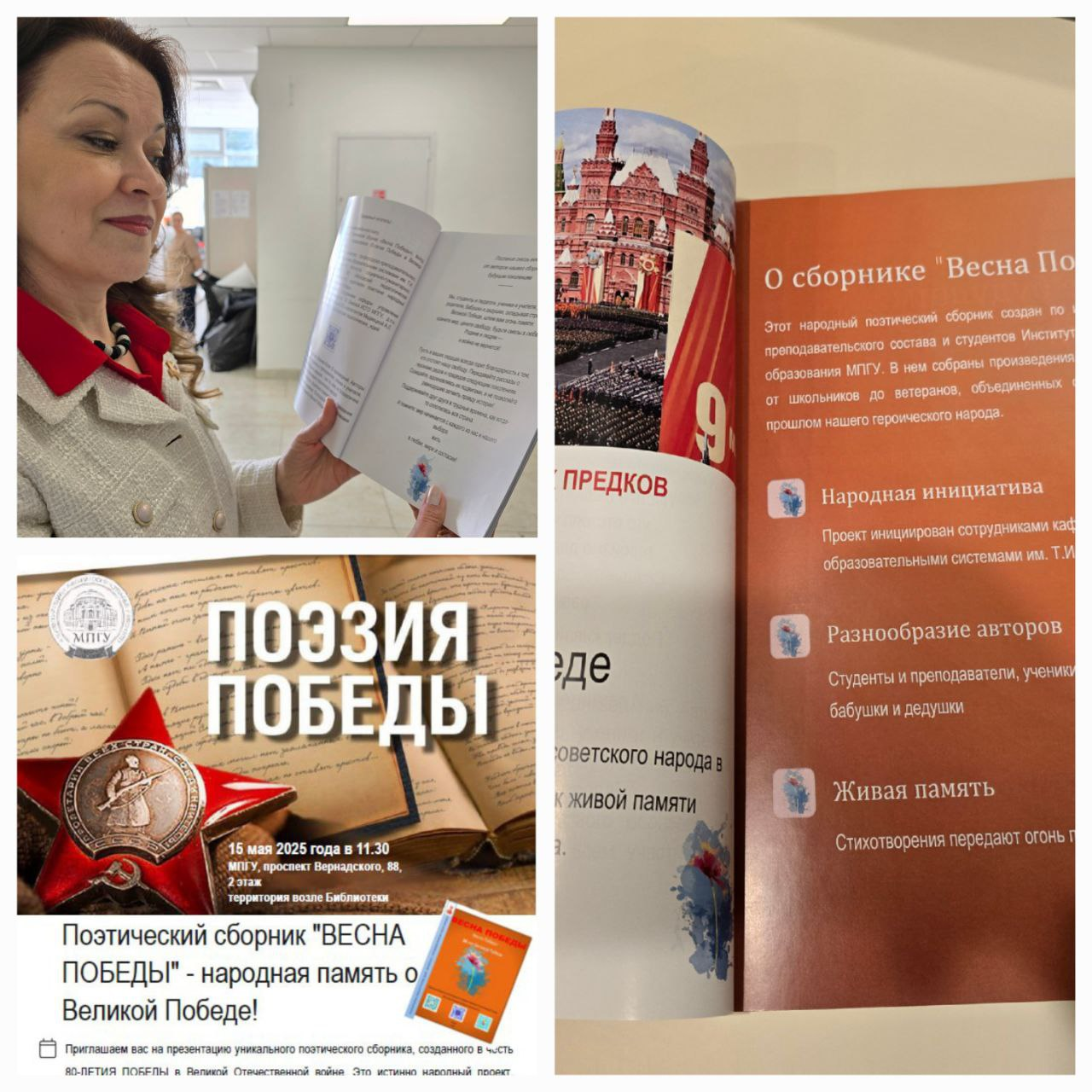 15 мая 2025 года во второй день форума «Патриотическое воспитание граждан России в условиях актуальных вызовов» в учебном КГФ (корпус гуманитарных факультетов) на 2 этаже в иммерсивном пространстве «Дороги Победы!» состоялась торжественная презентация авторского народного сборника Весна_Победы в рамках Литературного кафе. Это поистине народный сборник, авторами которого стали преподаватели и студенты, ученики и учителя школ, родители, бабушки и дедушки – все те, кому не безразлична тема ВЕЛИКОЙ ПОБЕДЫ нашего народа в Великой Отечественной войне.