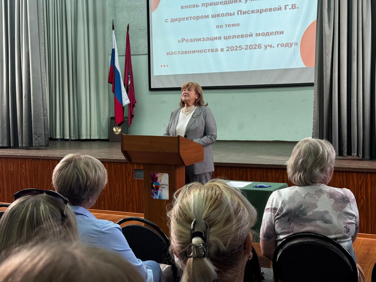 Г.В. Пискарева приветствовала всех участников и отметила важное значение наставничества в системе профессионального роста каждого педагога, необходимость активного взаимодействия, реверсного обучения, доверия, открытости, поиска эффективных форм и методов образовательной деятельности со школьниками. Поделилась воспоминаниями о своих наставниках и опыте, который очень помог в профессионально становлении и работе со школьниками-внимательное и бережное отношение к каждому. Школа всегда поддержит молодых и вновь пришедших учителей в их профессиональном становлении, успешной социализации в коллективе, имеющем многолетние успешные традиции.